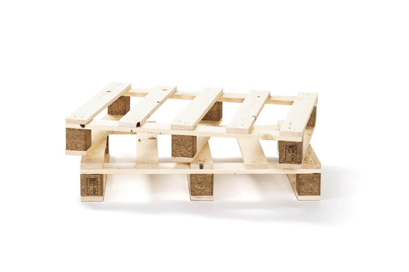 Pallen levereras med spånkloss eller träkloss. Om godset ska exporteras rekommenderar vi träkloss för bästa möjliga läsbarhet av stämplar.